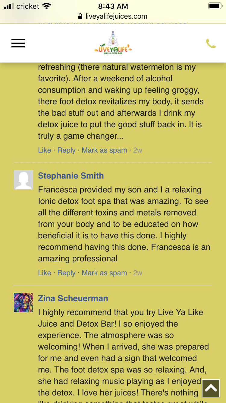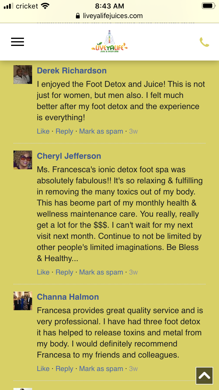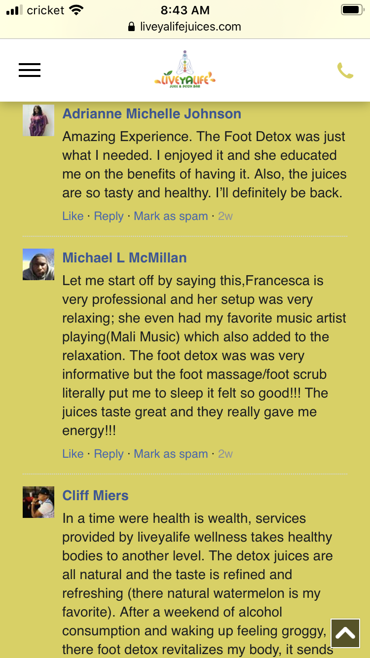 We at LiveYaLife love to help you look and feel your best inside and out. From our healthy fresh cold pressed juices, all from locally sourced fruits and veggies. And our Ionic Foot Detox to help you live your life.